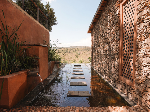 Rooms and Cottages: Stone-and-thatch cottages with private verandas, open fireplaces, and sweeping valley views. Interiors reflect local craft and natural textures.